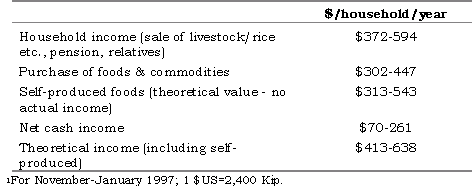 Table 1. Income and expenditure for households surveyed by LAO/97/007 (range