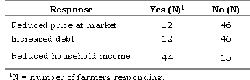 Table 2. Problems encountered by farmers (total number of farmers surveyed = 99).