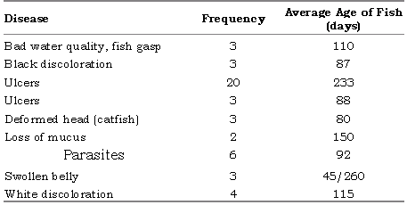 Table 7. Problems reported and the age of fish affected.