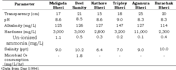 In West Bengal, the sewage-fed bheries where fish are reared in nearly 4,000 ha of water area can be cited as an example where, although it is a unique and inexpensive system of rearing fish, the ecological conditions limit the average production to only 1,500 to 2,000 kg/ha (Patnaik 1990). A picture of the water quality in these bheries is presented in Table 4 to emphasise the point that the water quality is creating stress to fish. Here the high microbial consumption of dissolved oxygen (1.8 mg/L/hr) indicates exhaustion of DO for a few hours at night, creating stressful conditions for fish. Moreover, un-ionised ammonia levels are also high.