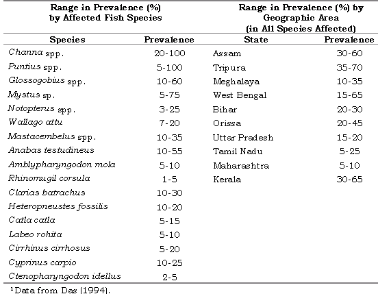 6. The prevalence of EUS ranged from 32.7 to 72.7%; argulosis, from 0.8 to 9.8%;