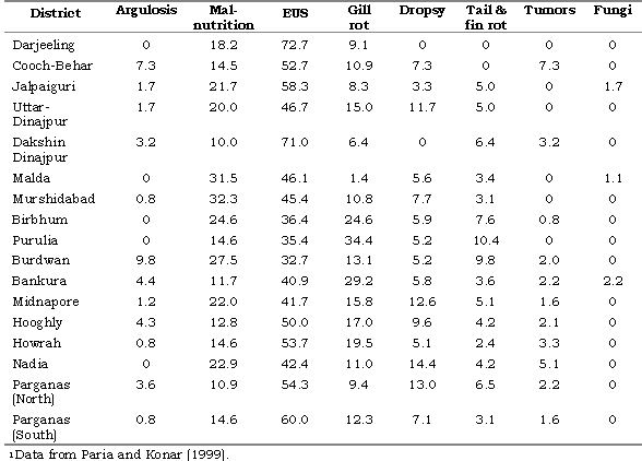 Table 6. Estimates (%) of disease in infected ponds in West Bengal.1
