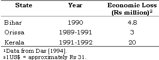 The little information that is available from some Indian states on the economic impact of fish losses due to EUS is given in Table 8.