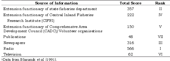 radio, extension functionaries of the state fisheries departments, newspapers,