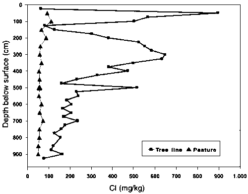 Figure 18: Deep chloride profiles under tree line and in adjacent pasture at Site 2