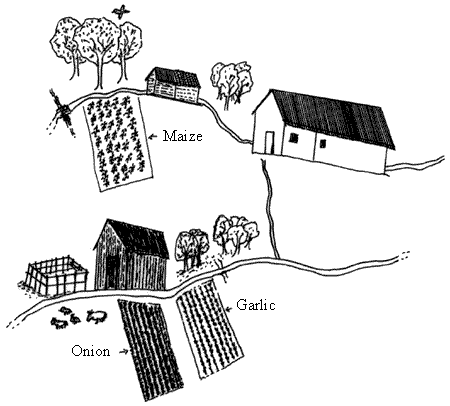 However, it was noted that the maize field was allotted to one house and the garlic and onion fields to another, which would indicate a specialisation of labour. The integration of these two crops adds complexity and greater vulnerability to the local production system. The growing of garlic and onions as commercial products depends strongly on the market, and they also require financing, which is not necessary in maize farming, due to the techniques applied in either case.
