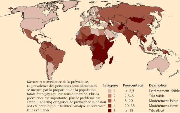 Pourcentage de personnes sous-alimentées par pays (1997-1999) ![]() |
