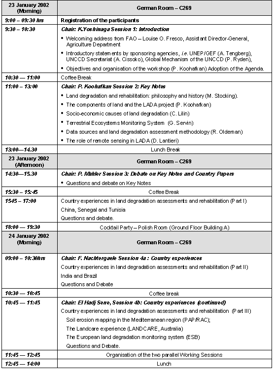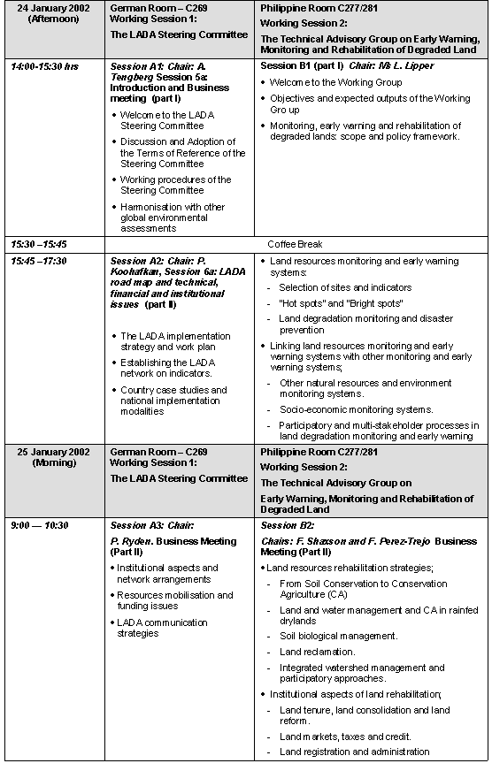 Meeting agenda and timetable