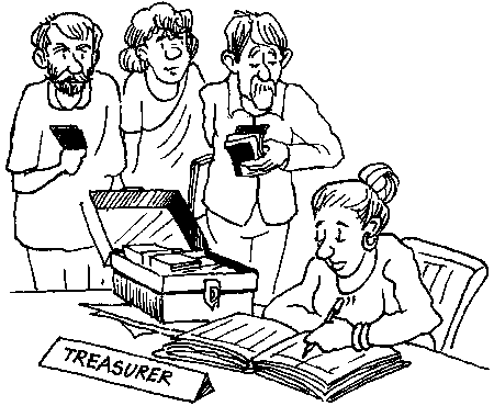 At the end of each meeting, the group should count how much cash they have in-hand and make sure that the amount matches the records. Everyone should participate, not just the treasurer, so that transparency is ensured.