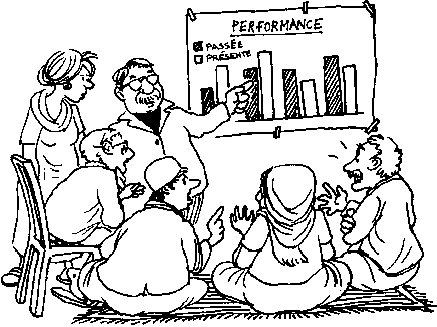 | NOTE: Une grande partie des informations que vous recherchez peuvent être déjà disponibles auprès du bureau du district local, des organisations non gouvernementales (ONG) travaillant dans la zone, et des chefs locaux. Les outils inclus dans cette section sont seulement quelques exemples de ce qu'il est possible de faire avec les gens dans le village pour mieux les connaître. Ce manuel pourra vous aider à recouper les informations dont vous disposez déjà et compléter ces dernières. Reportez-vous aux références bibliographiques pour une liste plus exhaustive des outils. |