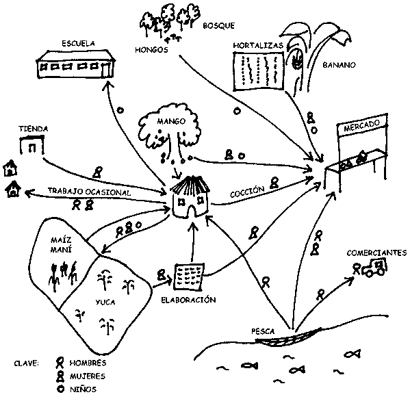 * Herramientas adaptadas de Callens, K. 2002. Methodological Guide: Participatory Appraisal and Analysis of Nutrition and Household Food Security Situations and Interventions from a Livelihoods Perspective. Roma, FAO. (Borrador)