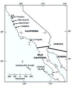 Organisé par les auteurs de cet article, ce voyage a été inspiré par la situation extrême des pins de l'île de Guadalupe qui n'ont pas eu de régénération réussie depuis des décennies (Ledig et al. 1998). Les chèvres introduites dans l'île au cours des années 1800 se sont multipliées bien au-delà de la capacité de charge de l'habitat, et tous les plants de pin sont alors consommés rapidement après leur germination. Les pins restants, environ 200 individus, sont tous très vieux. Les pins insulaires sont très différents de leurs parents du continent californien. Les arbres sont très larges en diamètre, avec des branches étalées et des cimes brise-vent. Des études variées de génétique au cours des 15 dernières années ont confirmé un haut niveau de différenciation génétique entre les cinq populations natives de cette espèce. En effet, les noms de variété ont été donnés aux populations continentales (var. radiata) et insulaires (var. binata), et certains taxonomistes donnent même des noms différents aux variétés des populations des îles (Guadalupe = var. binata, Cedros = var. cedrosensis).