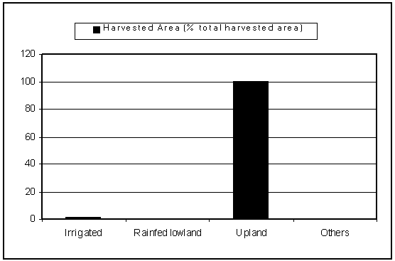 The following figure shows rice is grown mostly under upland ecology during 1995-2000 period. The government recently built a pilot irrigated rice area near Santa Cruz.