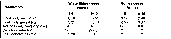 TABLE 3. Performance during the growing period of Native X Embden crossbred goslings