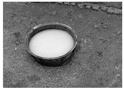 For the drinkers (Figure 3), a similar or a slightly larger space per bird is required than for the feeders and the drinkers should be at least 15 cm deep to allow the birds to wet their head and eyes. This will help prevent conjunctivitis and other eye irritations, particularly if the birds are fed a concentrate that produces dust. Drinking water should always be available.