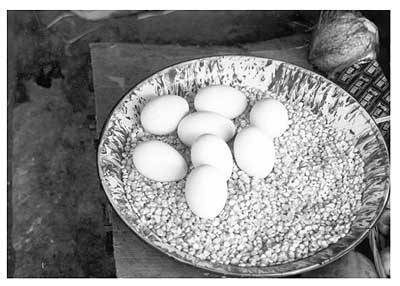 The purpose of disinfecting the eggs is to kill any micro-organisms that exist on the surface of the shell. The most popular method is to fumigate the eggs with formaldehyde. This is a gas with a wide anti-microbial action that is effective for bacteria, fungi and even some viruses. The fumigation is performed in sealed chambers where eggs are exposed on trays. The formaldehyde gas is produced by mixing formalin (a 30 percent solution of formaldehyde) with potassium permanganate. This is done in a rust-proof container (enamelware is often recommended) with a capacity 5-10 times larger than the volume of formalin being used because when the chemicals react, a foam is produced and the volume increases. A good mixture for disinfecting eggs is 40 ml of formalin and 20 g of potassium permanganate per cubic meter of the fumigation chamber for a half an hour. Care must be taken to avoid inhaling the formaldehyde gas because it is a strong irritant. The disinfecting should be done twice: once at the breeder facilities and again just before the eggs are put into the incubators.