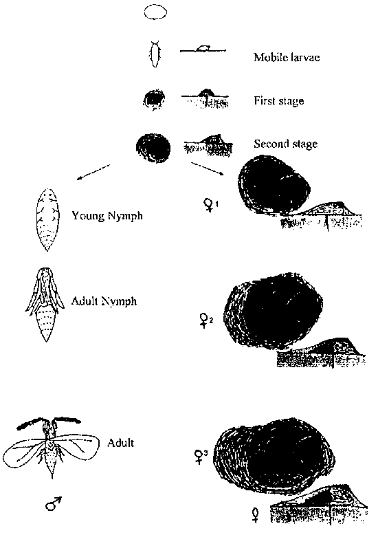 Figure 115. Cycle of white scale (Parlatoria blanchardii Targ.)