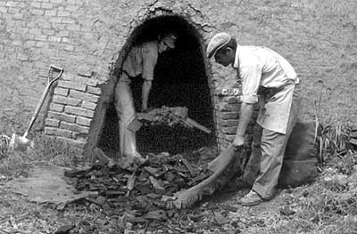 In developing countries wood-based fuel remains a dominant source of energy; piles of wood scraps fuel this boiler for electricity production, Honduras |