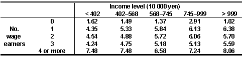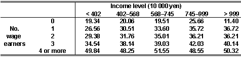 Table C.2 Annual total household income by income and number of wage earners (10 000 yen)