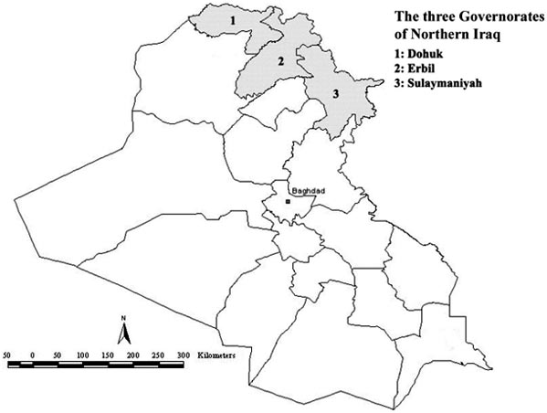 Boundaries of the country and of the three Northern Governorates were obtained in ArcView shapefile format from the official FAO GIS database. This data was provided in geographic coordinates (latitude, longitude) and WGS84 datum.