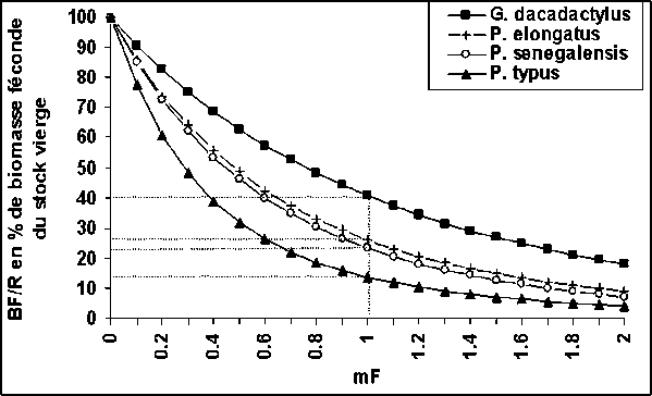 Il est important de rappeler ici que les quatre stocks soumis à l'analyse dans ce travail sont définis comme unités de gestion en référence à la zone guinéenne s'étendant de 9° Nord au 11° Nord. Ils doivent être considérés comme isolés spatialement et biologiquement par rapport aux stocks de la Guinée-Bissau au nord et de ceux de la Sierra Leone au sud; et que la pêche dans ces zones n'a aucun effet sensible sur leur évolution en Guinée.