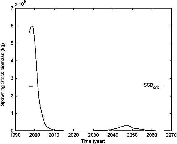 For the spring-spawning herring fishery open access competitive harvesting is inadequate to maintain a healthy biological stock and, clearly, the long-term economic benefits are minimal. However, it is interesting that within an open access regime the simple management strategy of complete fishery closure as the stock falls below the safe biological level (SSB) has substantial positive consequences for both stock and profit levels.
