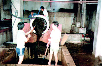Washing Hizikia fusiformis (Cheju Island, the Republic of Korea).