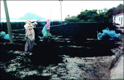 Sun drying Hizikia fusiformis (Cheju Island, the Republic of Korea).