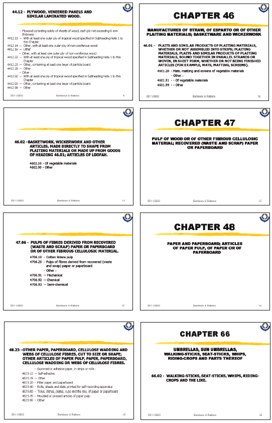 * Develop effective enquiry on the bamboo/rattan component of plaiting product aggregates, panels and pulp and paper in trade.