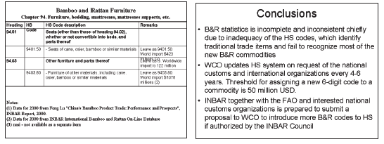 * Seek modification of national trade coding and international HS trade coding to secure greater visibility of important bamboo and rattan products in international trade statistics.