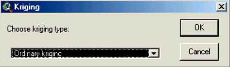 6. A new window pops up where you have to select the type of Kriging. You do not suspect that there is a trend in the water depth data so you select Ordinary Kriging(Figure C.5) and click OK.