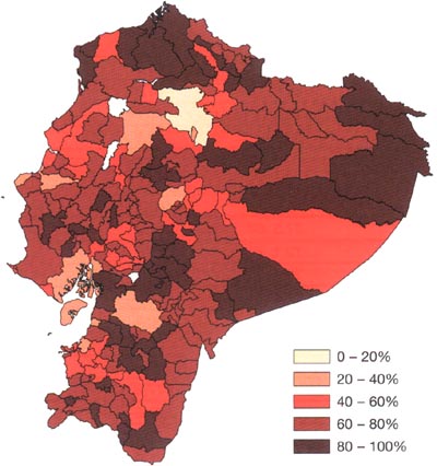 In the analysis of poverty in Ecuador, the spatial autocorrelation of household consumption was calculated for the total sample (5 630 households), the rural households (2 264) and the urban households (3 366). Table 4 shows that there is a large and significant spatial autocorrelation in rural household consumption, whereas it is small but significant for the total sample and urban household consumption.