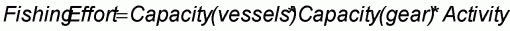 IN ADDITION TO THIS FISHING CAPACITY TERMINOLOGY, FISHING CAPACITY (AS DESCRIBED ABOVE) HAS BEEN USED IN THE EU TO DEFINE A FURTHER TERM OF FISHING EFFORT, WITH THE TWO TERMS WORKING IN PARALLEL TO ACHIEVE DESIRED FLEET REDUCTIONS SINCE 1992. LASSEN ET AL. (1996) STATE THAT FISHING EFFORT CAN BE CONSIDERED AS COMPOSED OF TWO SEPARATE ELEMENTS: A CAPACITY ELEMENT (VESSEL AND GEAR CHARACTERISTICS) AND AN ACTIVITY ELEMENT (CAPACITY UTILIZATION, FISHING TIME ETC.). THAT IS,