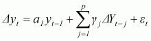 where yt and yt-1 are the present and the immediate past values of a variable, respectively; and et is a stationary error term.
