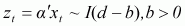 The components of the vector xt are said to be cointegrated of order d, b, denoted by xt ~ CI(d, b), if (i) all components of xt are I(d); (ii) there exists a vector a ¹ 0 so that linear combination,