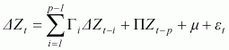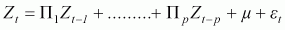 Zt-p = an (m by 1) vector of the ith lagged value of Z for i =1,2,...., p;