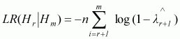 Log likelihood ratio statistics for the test are given by: