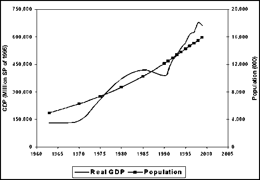 Figure 3.1 Population and GDP in Syria, 1965-2000