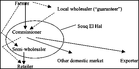 In Souq el Hal, farmers can sell either to commissioners or to wholesalers-retailers. Normal flows are as follows: