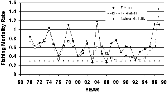 Figure 6. Fishing mortality rates for males and females spiny lobsters