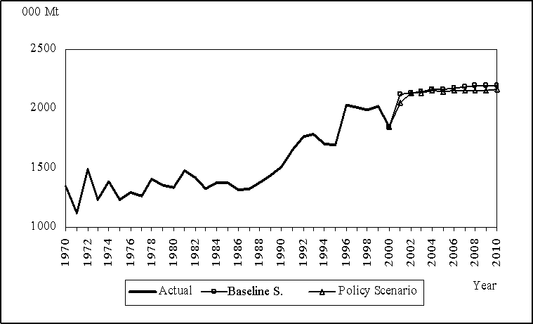 In projecting trade flows in the baseline and policy scenarios no changes were assumed other than those applied to supply and demand. That is, no change is assumed for trade policies in either the baseline or the policy scenarios.