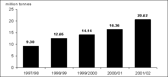 The majority of recent policy developments affecting grains consumption, marketing and stocks represented a continuation of previous trends towards privatisation and further market liberalization. Nonetheless, in many countries, falling grain prices during the review period prompted governments to intervene in order to stabilise the market.