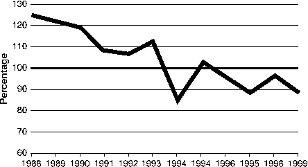 Box Figure 4.2 Malnutrition (weight for height) trends by season, 1992-2001
