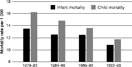 Box Figure 4.3 Infant and child mortality, 1979-83 to 1992-96