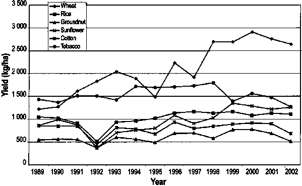 South Africa recorded very high increases in wheat, groundnut, sunflower, cotton and tobacco yields.