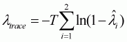null of no cointegration referred to as the Trace and the Maximum Eigenvalue