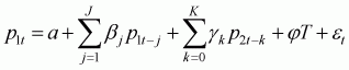 Fackler and Goodwin (2001) refer to the above relationship as the spatial arbitrage condition and postulate that it identifies a weak form of the Law of One Price, the strong form being characterized by equality (1). They also emphasize that relationship (2) represents an equilibrium condition. Observed prices may diverge from relationship (1), but spatial arbitrage will cause the difference between the two prices to move towards the transfer cost. The spatial arbitrage condition implies that market integration lends itself to a cointegration interpretation with its presence being evaluated by means of cointegration tests. Cointegration can be thought of as the empirical counterpart of the theoretical notion of a long run equilibrium relationship. If two spatially separated price series are cointegrated, there is a tendency for them to co-move in the long run according to a linear relationship. In the short run, the prices may drift apart, as shocks in one market may not be instantaneously transmitted to other markets or due to delays in transport, however, arbitration opportunities ensure that these divergences from the underlying long run (equilibrium) relationship are transitory and not permanent.