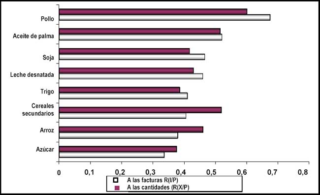 Efecto de los precios en las facturas y cantidades de las importaciones de alimentos