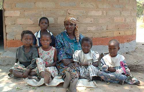 Grandmother with her grandchildren in Zambia