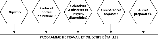 Comme pour tous les projets de recherche et toutes les études, toutes sortes de tâches précèdent nécessairement l'étude proprement dite. La planification d'une étude est un processus important et la qualité des préparatifs peut être essentielle à la qualité des résultats obtenus. Aussi, la phase de planification exige-t-elle que l'on y consacre suffisamment de temps et d'énergie. Parmi les questions auxquelles il faut répondre avant de commencer une étude des subventions aux pêches figurent les suivantes: